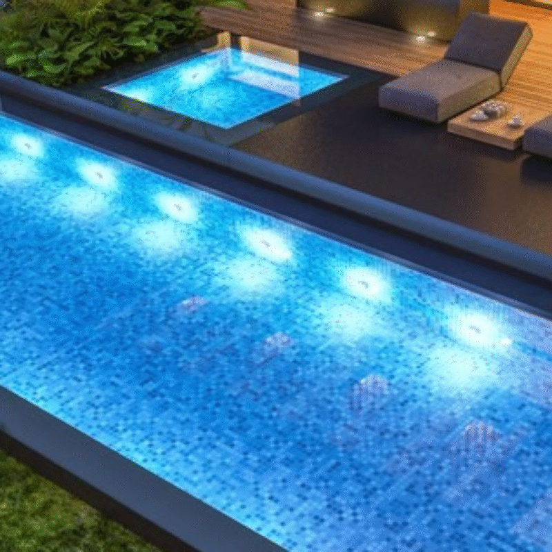 Underwater LED Pool Lights – installed below the water surface for glowing effects.